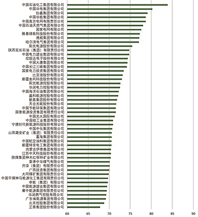 在榜单位列前十的企业中,有四家电力行业企业:华电集团(80.24分)、华能集团(78.69分)、南方电网(78.65分)、国家电网(77.60分)。