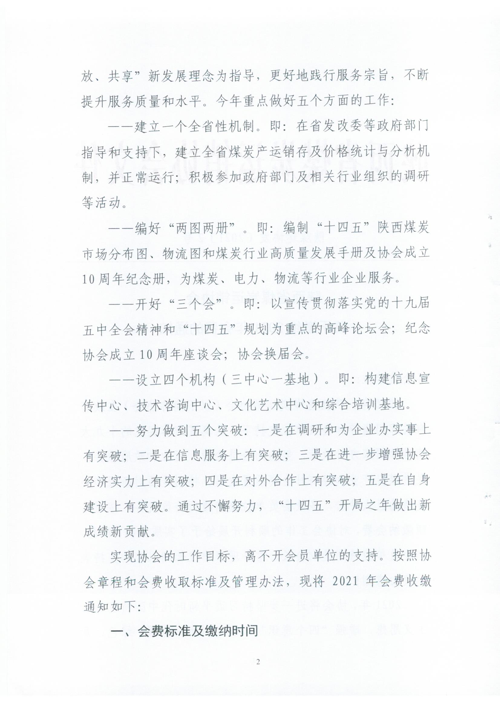 陕西省煤炭运销协会关于缴纳2021年会费的通知
