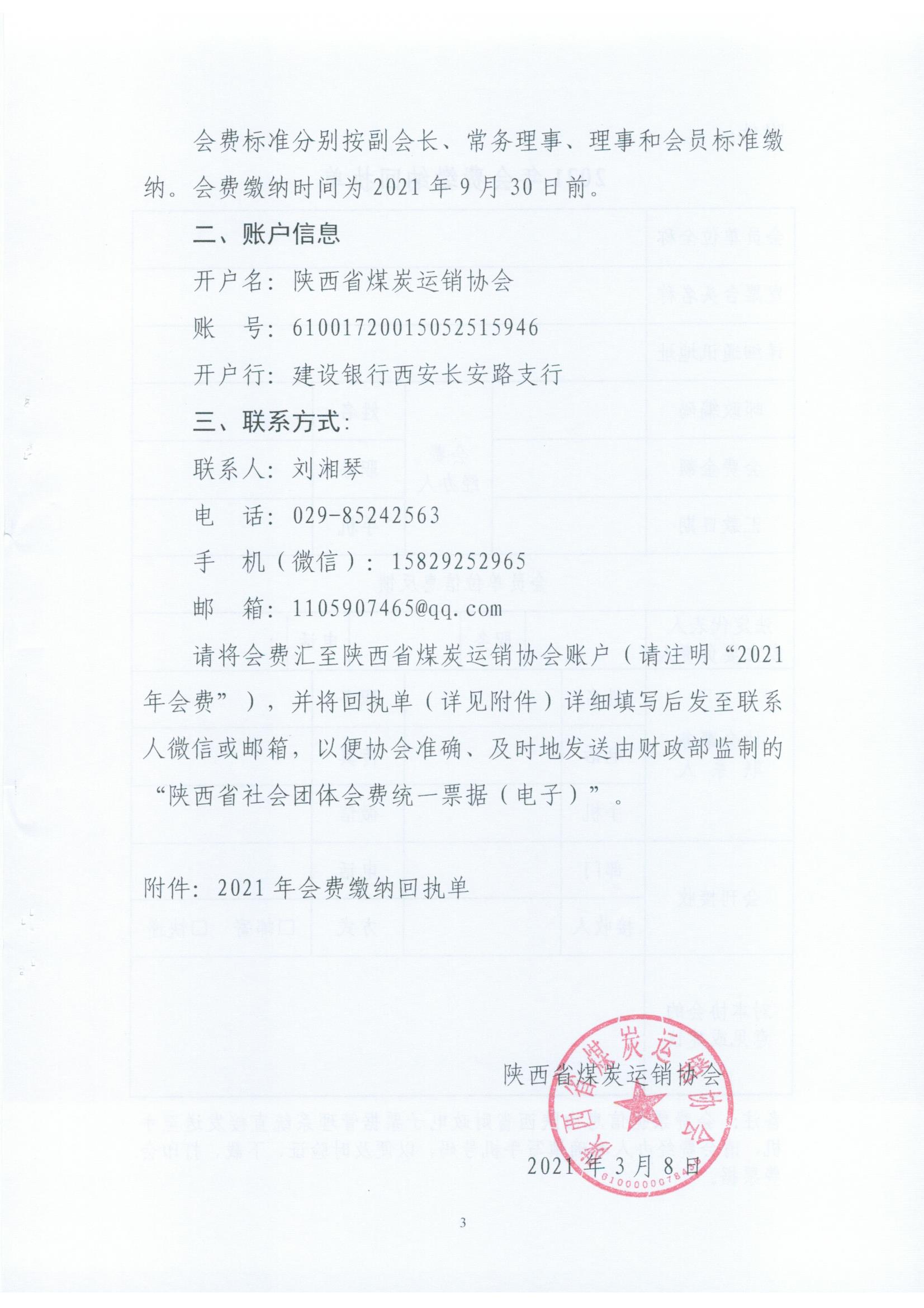陕西省煤炭运销关于缴纳2021年会费的通知
